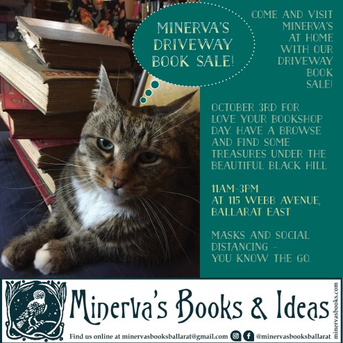 Sep 22, 2020Dec 23, 2020Amy TLeave a Comment on Minerva’s Driveway Book Sale for Love Your Bookshop Day! Minerva’s Driveway Book Sale for Love Your Bookshop Day! Come and visit us at home and maybe even meet our cats Minerva (pictured) and Boots! 11-3 on October 3rd. Have a browse, find some treasures and enjoy the Black Hill surrounds : ) Share this: Click to share on X (Opens in new window) X Click to share on Facebook (Opens in new window) Facebook Like Loading... Related