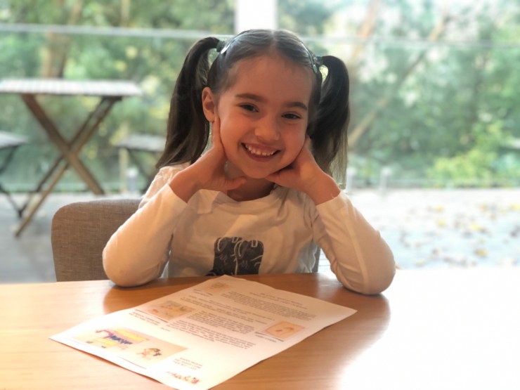 Woman’s voice (host Amy Tsilemanis): So my lovely guest Lucy here. Can you tell me your name and your age?